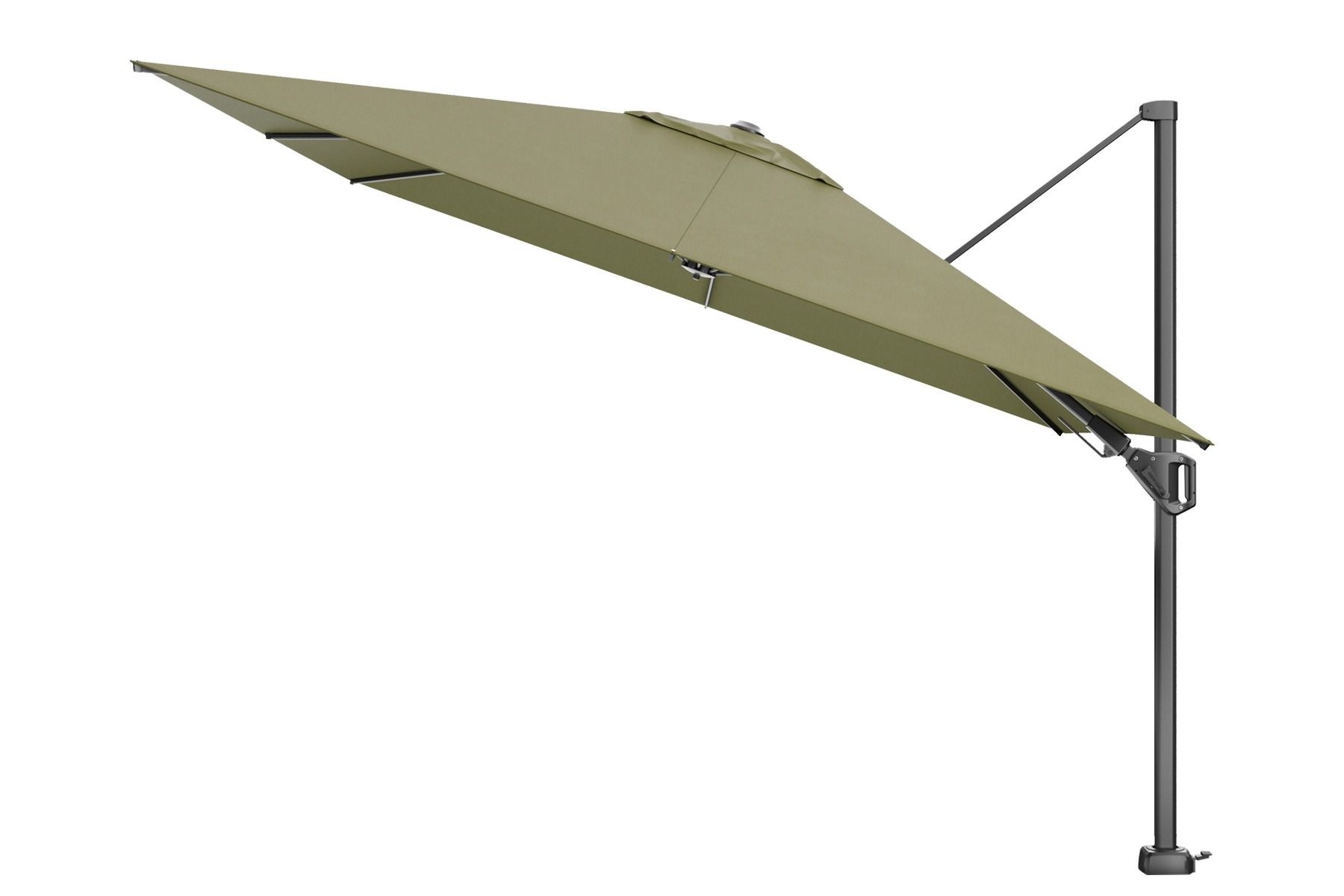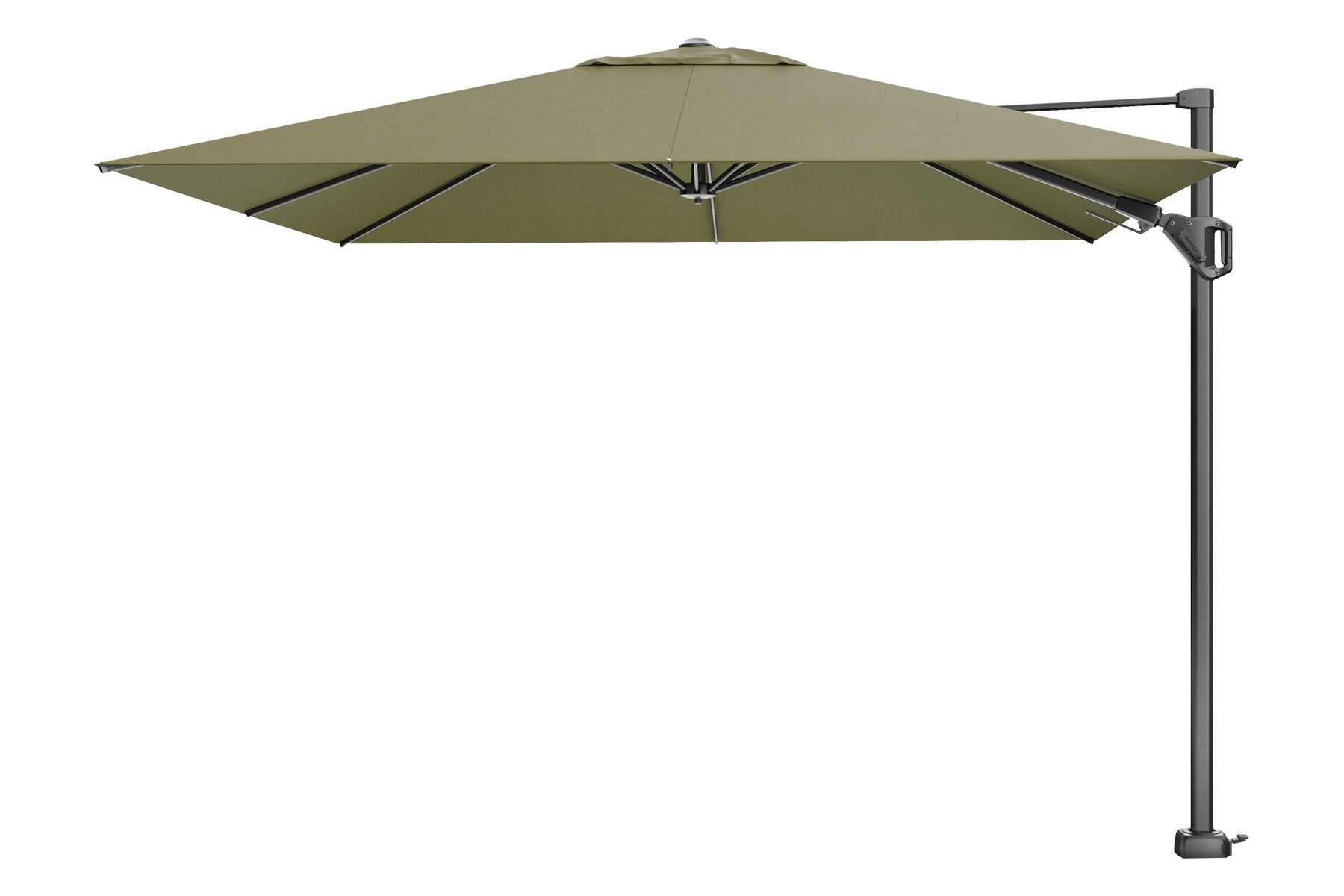 De Challenger T2 zweefparasol wordt standaard geleverd exclusief parasolvoet en parasolhoes. Wij raden u aan om gebruik te maken van een parasolvoet van minstens 90 kilogram. Deze hebben wij zowel met als zonder wielen. Ook is het mogelijk om te kiezen voor een ingraafparasolvoet. Deze heeft als voordeel dat je meer ruimte op je terras over hebt. Kortom genieten doe in de schaduw doe je met de Platinum Challenger T2 3x3m. zweefparasol.