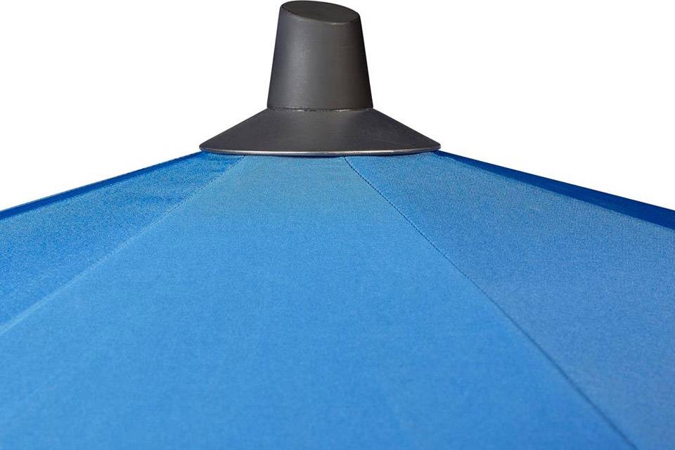 Het parasoldoek van de Riva parasol 2.5 meter is ecru van kleur. Het doek is van goede kwaliteit, deze is namelijk gemaakt van 100 % polyester. Daarnaast is het parasoldoek voorzien van een speciale vuil- en waterafstotende coating. Deze coating zorgt er ook voor dat het doek minder snel van kleur verschiet. Aan het uiteinde van de baleinen van de Riva parasol is een speciale doekspanner gemaakt. Hierdoor staat het doek altijd mooi strak gespannen.